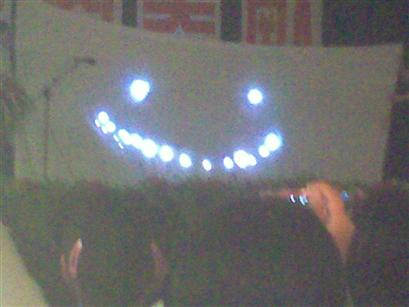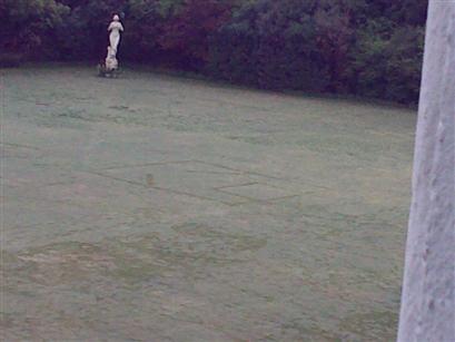 这张照片要放大看,就会发现有个超大的“囧”在大草坪上——