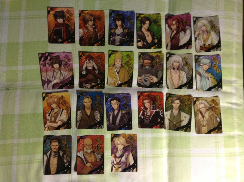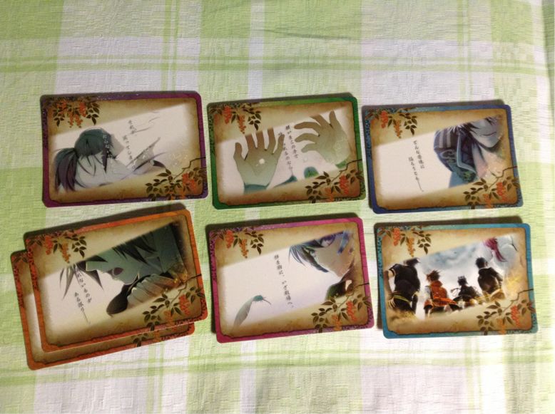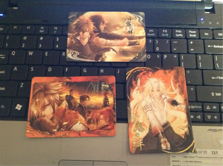 脑子一发热抱了一盒十鬼trading card回来,但和千耶相性太差,倒是千岁,唯二抽中SPR card,全和千岁有关!重复的也是千岁最多!但窝要千耶啊(T ^ T)人物card、event card和countdown card基本上一盒就能全收齐了,SPR和SP就完全看RP了orz(还好抽中的SP里有千耶,否则窝真的要骂银了!唯一的安慰...